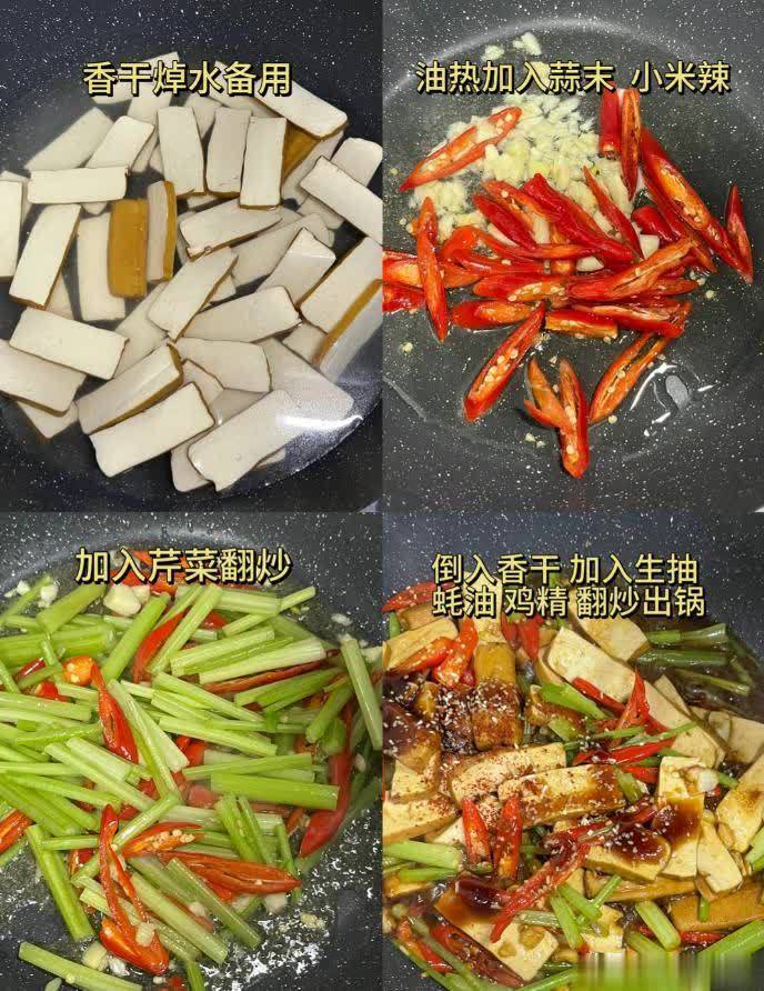芹菜平肝清热、降压去烦,是经典清肝菜,能疏通肝火、润肠排毒。香干植物蛋白丰富,清淡低脂,护肝又饱腹,适合压力大、易怒、口苦的人日常吃。